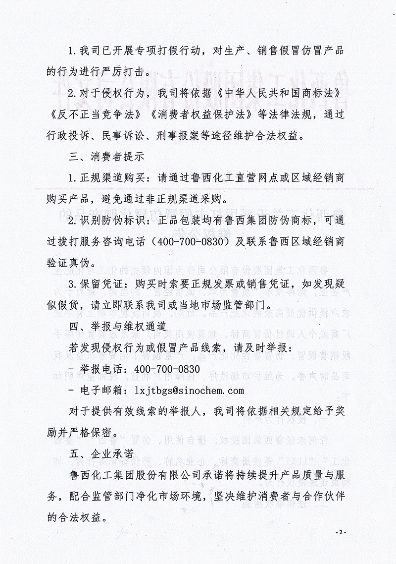 魯西化工關(guān)于嚴(yán)厲打擊假冒仿冒化肥產(chǎn)品的維權(quán)公告